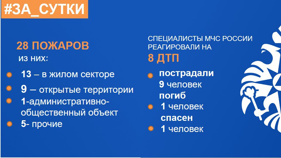 МЧС России: за прошедшие сутки ликвидированы 28 пожаров