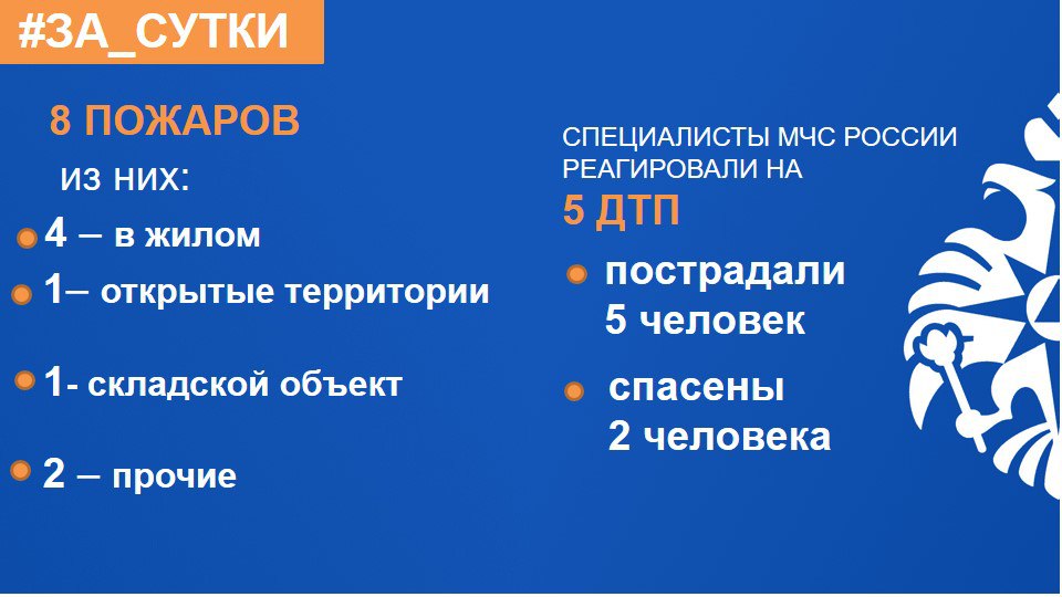 МЧС России: за прошедшие сутки ликвидированы 8 пожаров