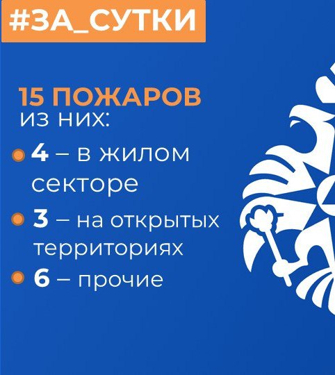 МЧС России: за прошедшие сутки ликвидированы 15 пожаров