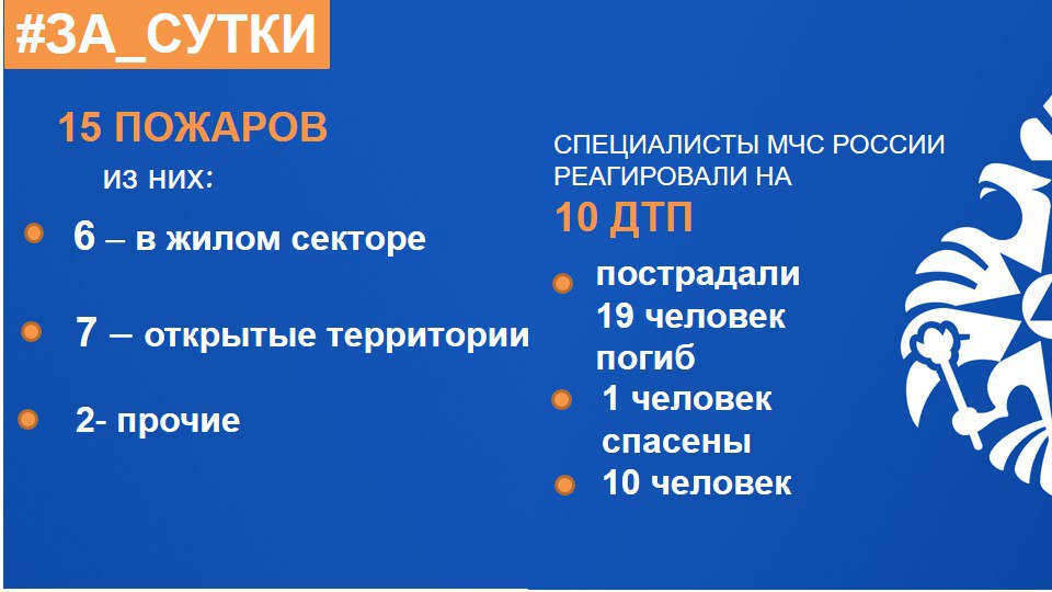 МЧС России: за прошедшие сутки ликвидированы 15 пожаров