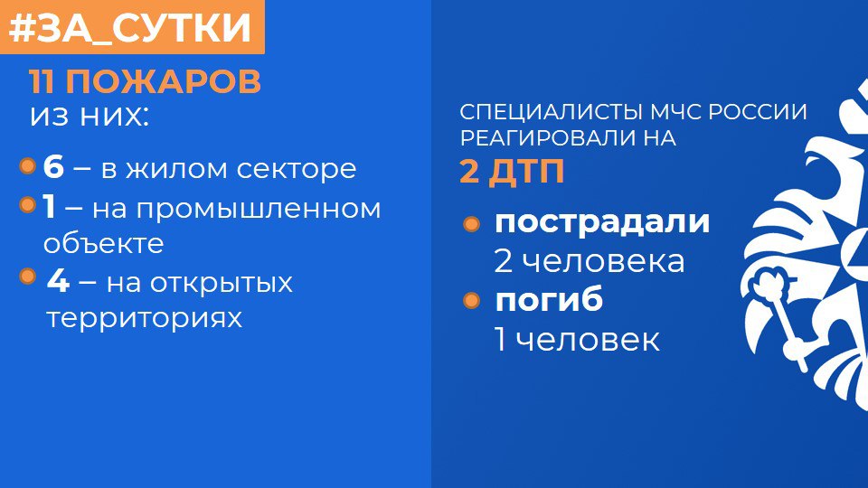 МЧС России: за прошедшие сутки ликвидированы 11 пожаров
