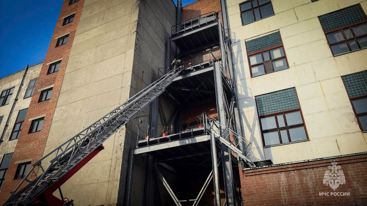 В Екатеринбурге прошли пожарно-тактические учения на здание завода производства гидравлических компонентов. По легенде, из-за аварии электрооборудования загорелся цех на втором этаже главного корпуса.