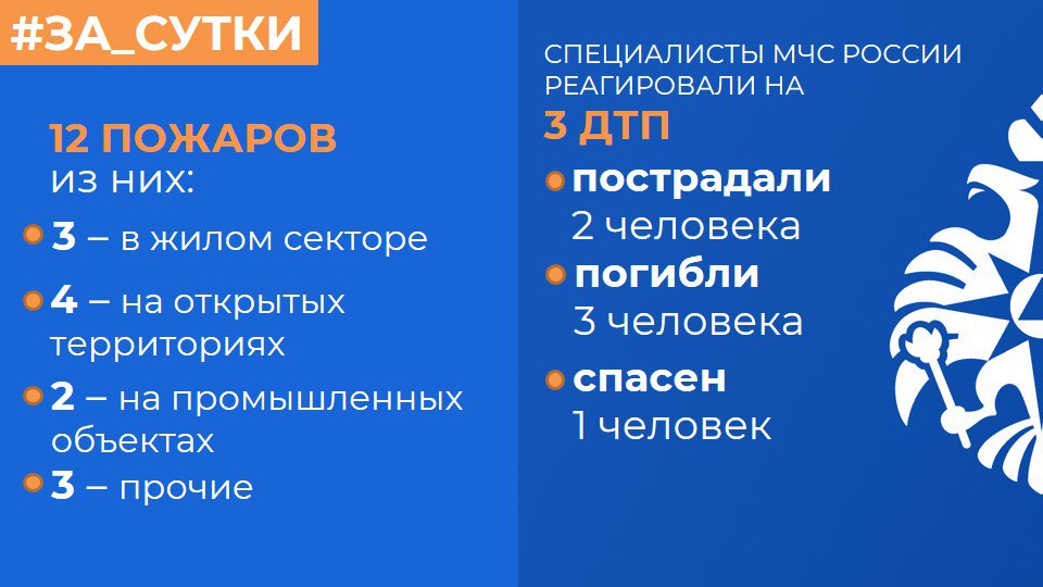 МЧС России: за прошедшие сутки ликвидированы 12 пожаров