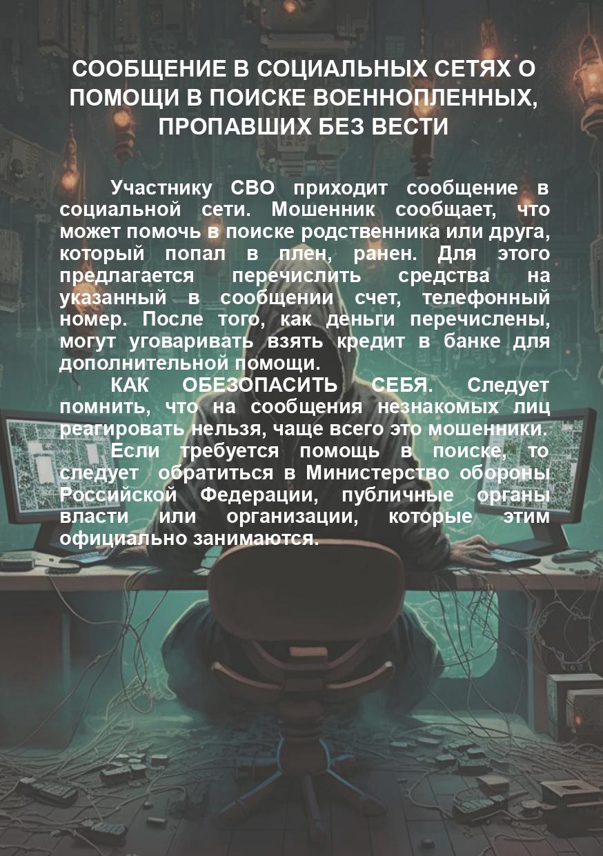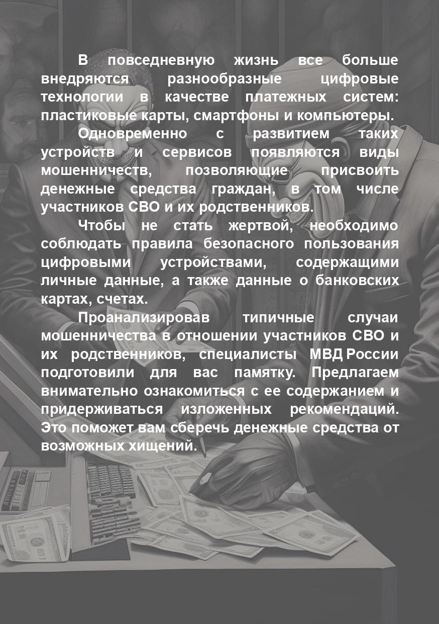 МВД подготовило памятку по финансовой безопасности для участников СВО и их семей. Об этом сообщил начальник пресс-службы ГУ МВД по Свердловской области Валерий Горелых.