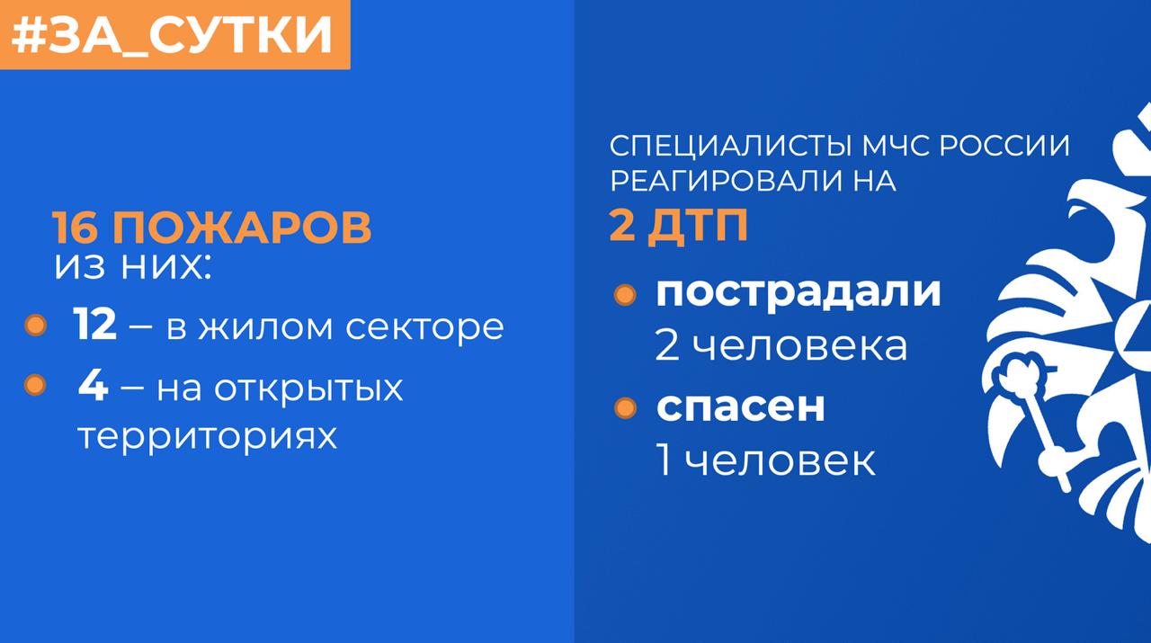 МЧС России: за прошедшие сутки ликвидированы 16 пожаров