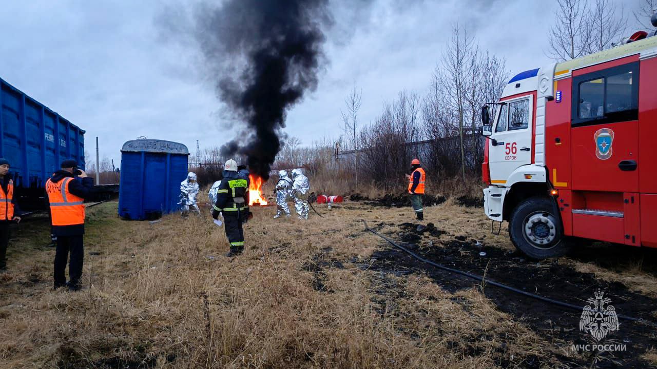 На территории муниципального округа Серов состоялись комплексные совместные учения личного состава 56 пожарно-спасательной части и подразделений ОАО «РЖД» при взаимодействии с органами исполнительной власти в зоне ответственности Свердловской железной дороги.