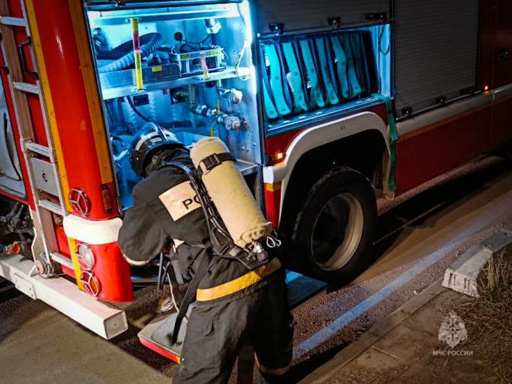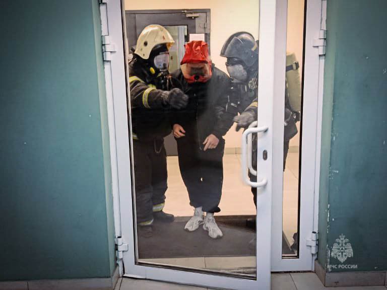 огнеборцы оперативно ликвидировали условный пожар в одной из квартир комплекса, используя современную технику и средства пожаротушения