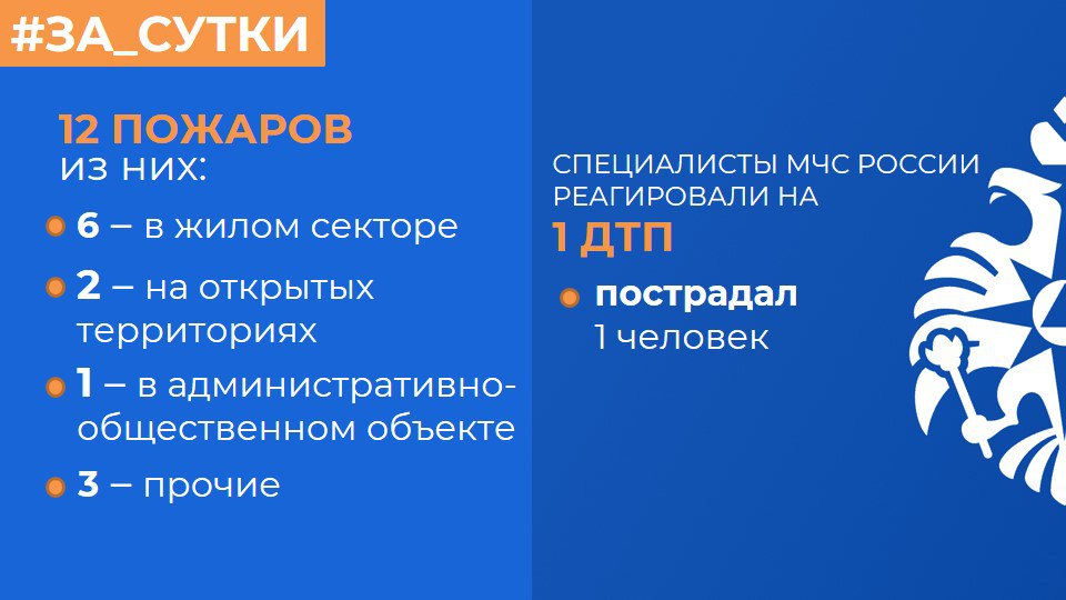 МЧС России: за прошедшие сутки ликвидированы 12 пожаров