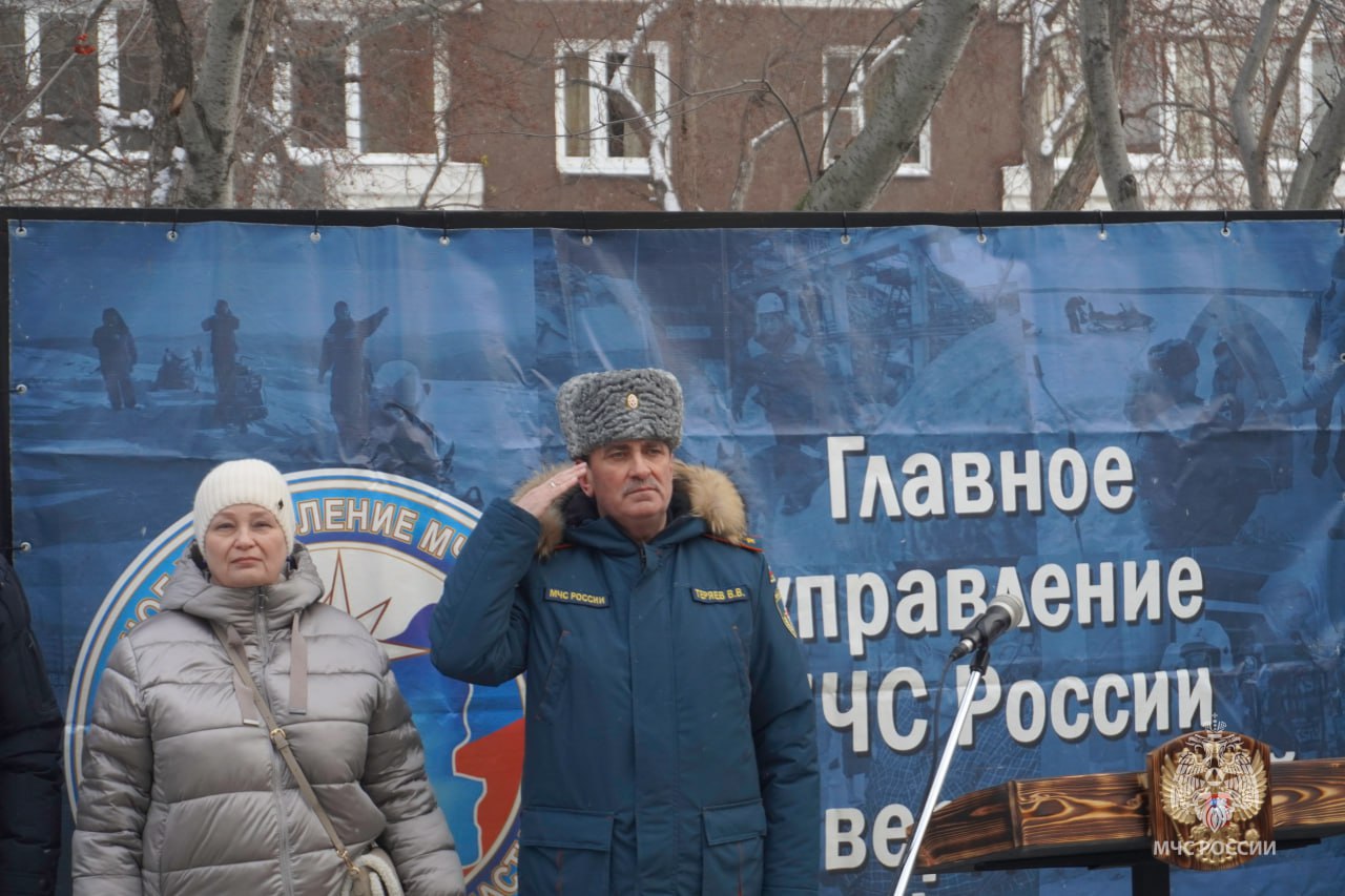 Мероприятие прошло на пересечении улиц Белинского и Фрунзе и собрало сотрудников МЧС России, представителей пожарно-спасательного сообщества, ветеранов и родных Виктора Алексеевича.