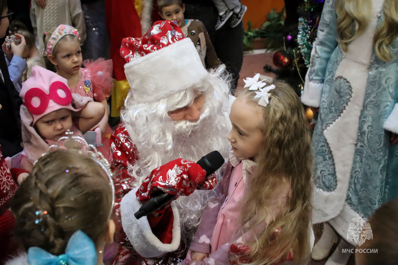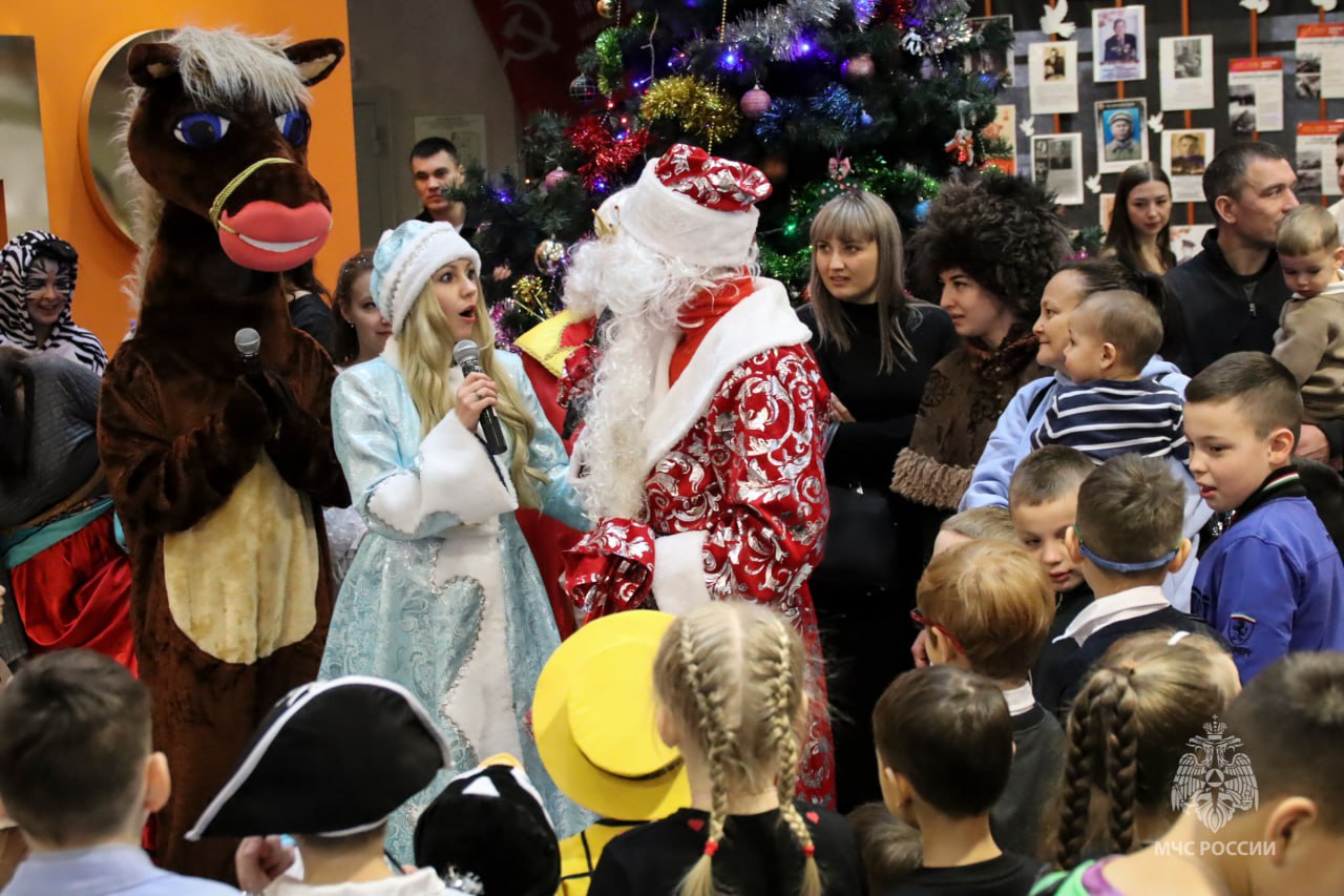 В актовом зале детям показали представление по мотивам сказки «Бременские музыканты»! На сцене сотрудники Главного управления предстали перед детьми в ролях любимых героев. Юные зрители с азартом помогали героям победить разбойников, пели вместе с ними и с нетерпением ждали Деда Мороза и Снегурочку.