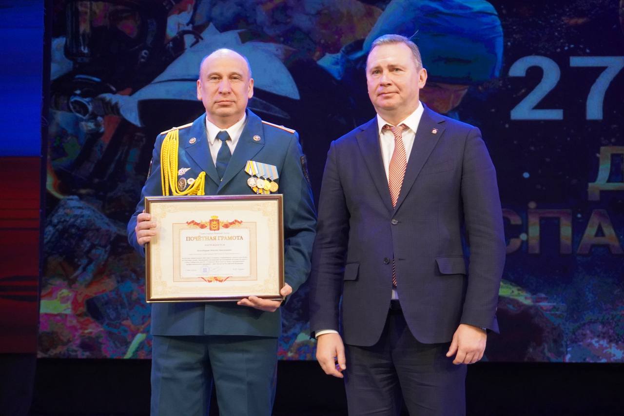 «Уважаемые коллеги и ветераны службы! Сегодня мы открываем памятник, посвящённый тем, кто стоит на страже нашей безопасности — пожарным и спасателям. Это место станет символом благодарности всем, кто служит в системе МЧС России. Работа спасателя — это постоянный вызов, риск и готовность к самопожертвованию. За каждым тушением пожара, каждой эвакуацией из зоны ЧС стоят люди с сильным сердцем и чистой совестью. Этот памятник — дань их героизму, память о подвигах и напоминание будущим поколениям о том, что значит быть настоящим защитником», - отметил Виктор Владимирович, обращаясь к огнеборцам и гостям.