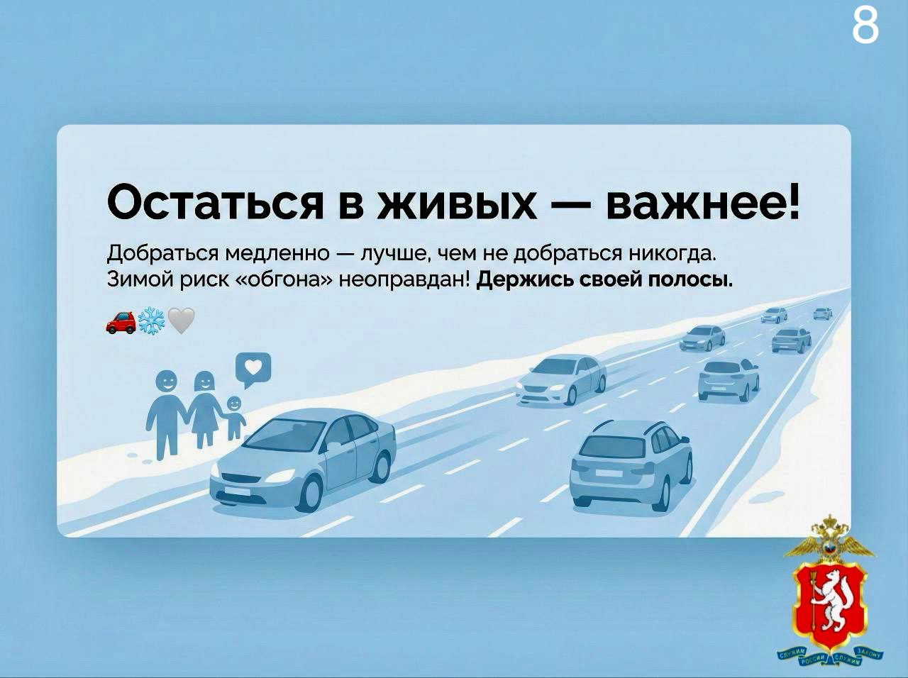 Госавтоинспекция Свердловской области напоминает: добраться медленно лучше, чем не добраться никогда. Выбирайте безопасную скорость, соблюдайте дистанцию и оставайтесь в своей полосе. Ваша жизнь и жизнь других участников движения не ставка для рискованных манёвров.