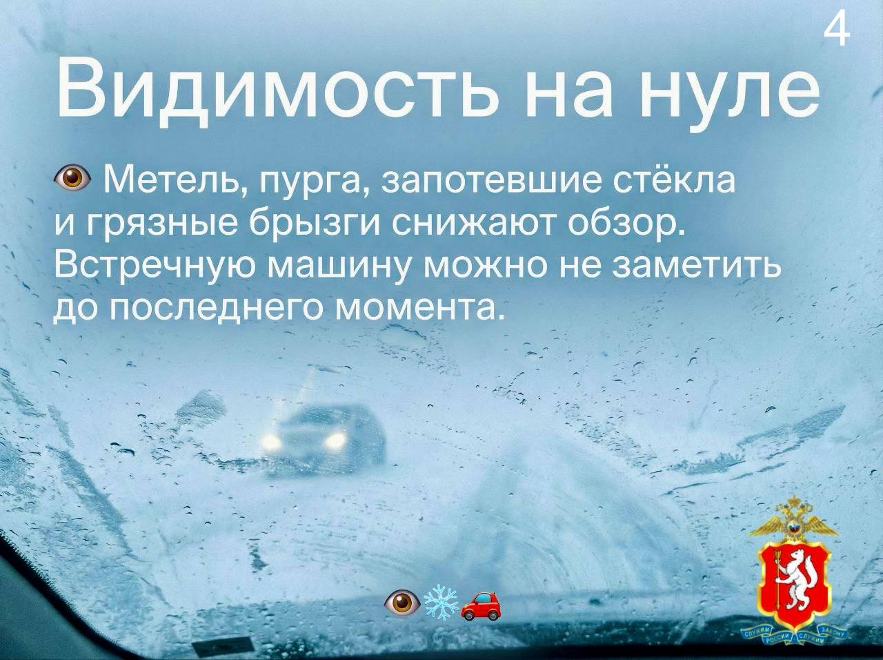 Ограниченная видимость. Метель, снегопад, запотевшие стёкла и грязные брызги от грузовиков резко сокращают обзор. Можно просто не разглядеть встречную машину до последнего момента.
