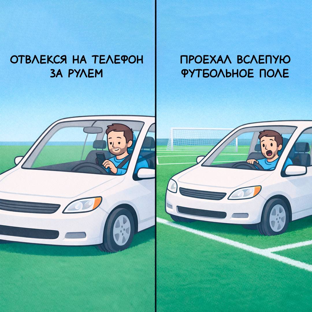 Помните, всего 5 секунд на скорости 60 км/ч — и ваша машина проезжает вслепую целое футбольное поле.