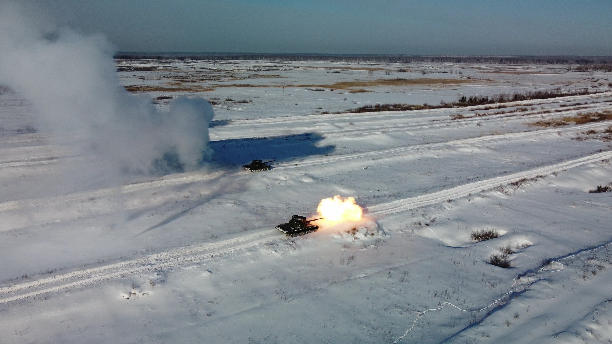 Работают из танков Т-72 и боевых машин пехоты БМП-2 по движущимся мишеням, а также учатся штурмовать позиции врага в условиях городской застройки с применением дронов.