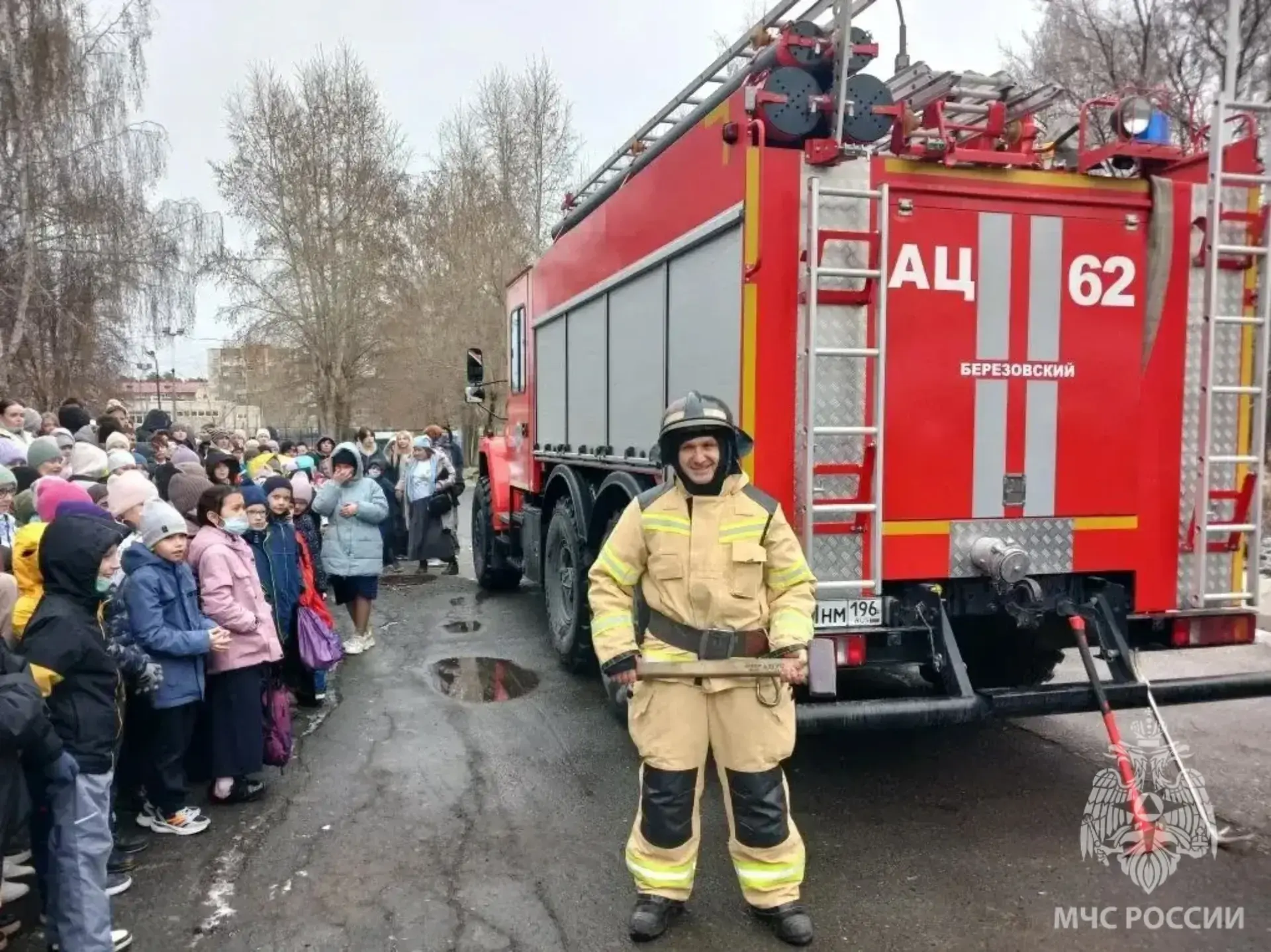 На днях ученики школы №9 г. Берёзовского сменили школьные парты на боевые шлемы. Огнеборцы 62-й пожарно-спасательной части провели для ребят незабываемый выездной урок, где строгие правила превратились в живое приключение.