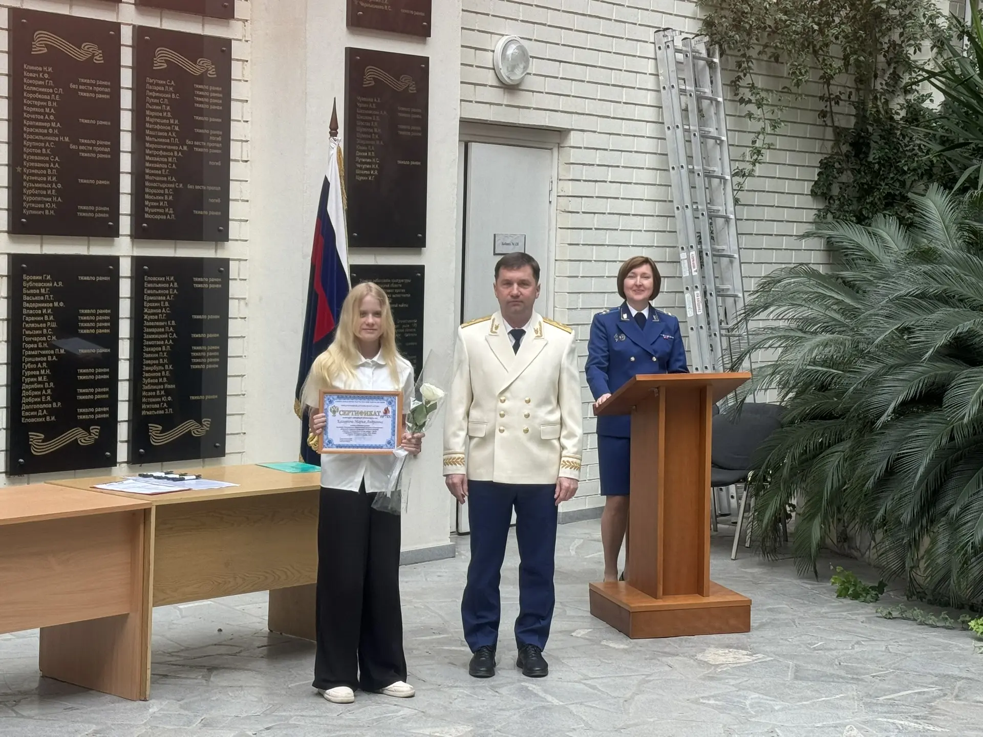 Кроме того, детям-победителям конкурсного отбора детей на участие в дополнительной общеразвивающей программе «Юный правовед», реализуемой Генеральной прокуратурой Российской Федерации совместно с Международным детским центром «Артек», были вручены сертификаты о награждении путевками на смену в детский центр «Артек».
