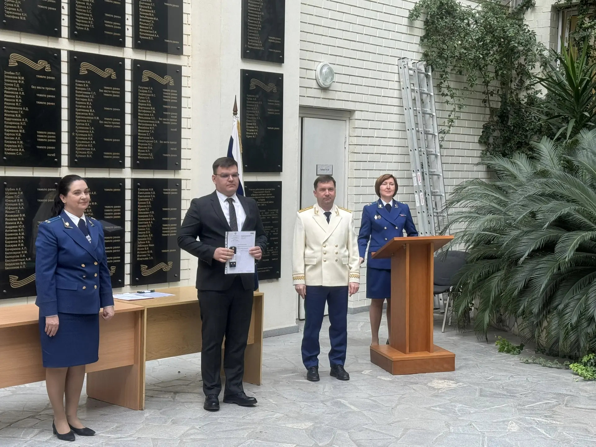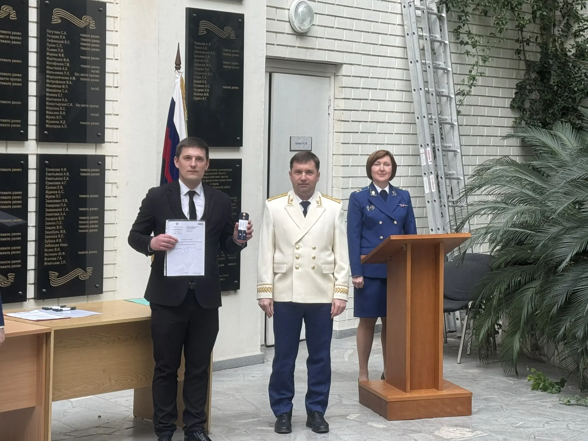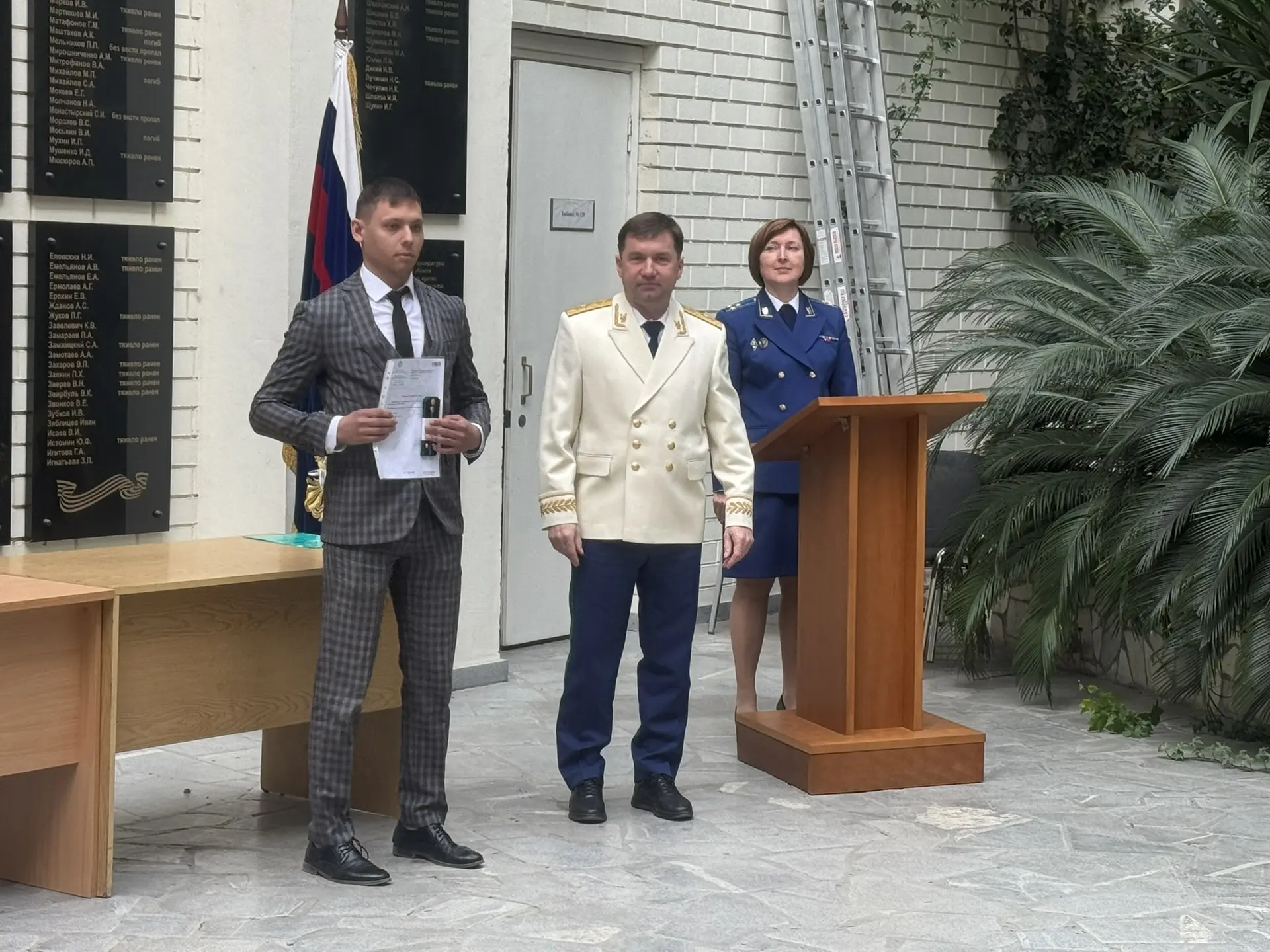 Сегодня, 28 апреля 2026 года, в прокуратуре Свердловской области в торжественной обстановке в присутствии членов аттестационной комиссии, ветеранов прокуратуры области первым заместителем прокурора области Александром Дуркиным в связи с присвоением: