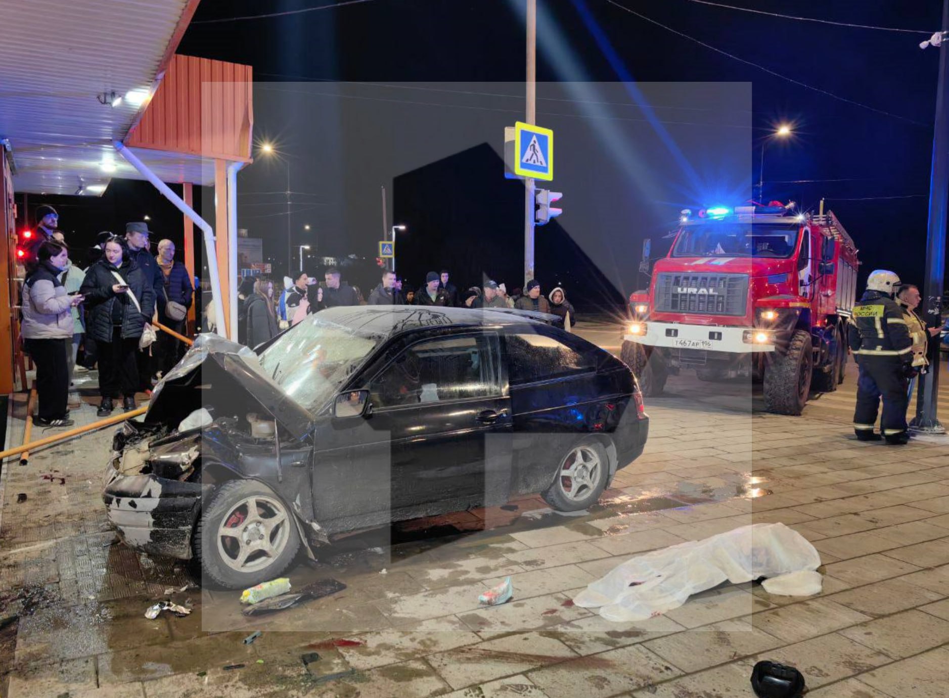 Машина влетела в продуктовый магазин в Ревде Свердловской области, "захватив" по пути пешеходов.