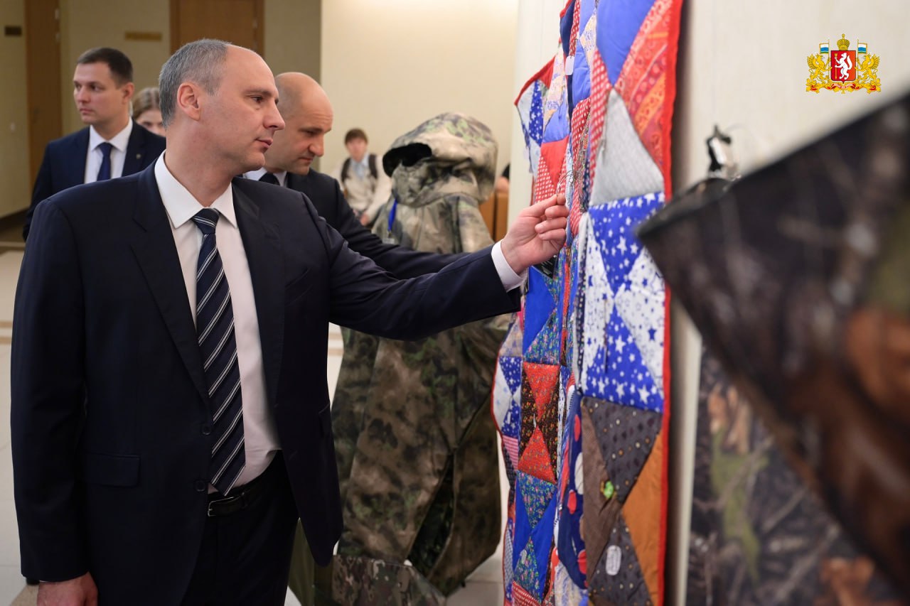 Также Денис Паслер пообщался с представителями Женского Движения «Единой России» и волонтёров, которые заготовили изделия для нужд СВО. В Законодательном Собрании были представлены маскировочные сети, накидки, плащи, балаклавы, окопные свечи, армейский душ, термоодеяла, аптечки, ортезы и бандажи, а также письма солдату и браслеты от детей.