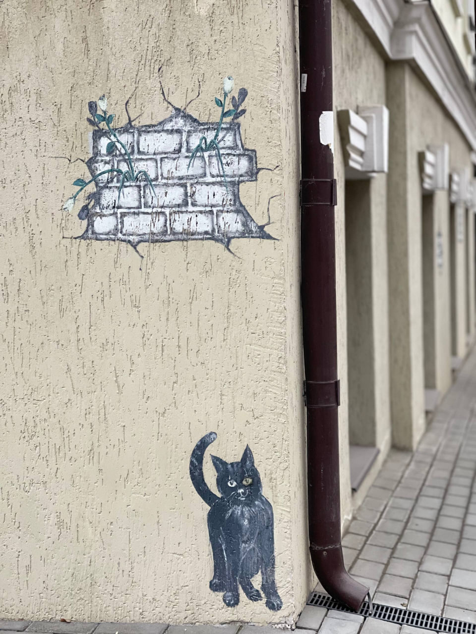 Пушистых, к сожалению, погладить вряд ли удастся, ведь они нанесены на стены в виде милейшего стрит-арта. Если что, то найти их можно на улице Чернышевского, 12.