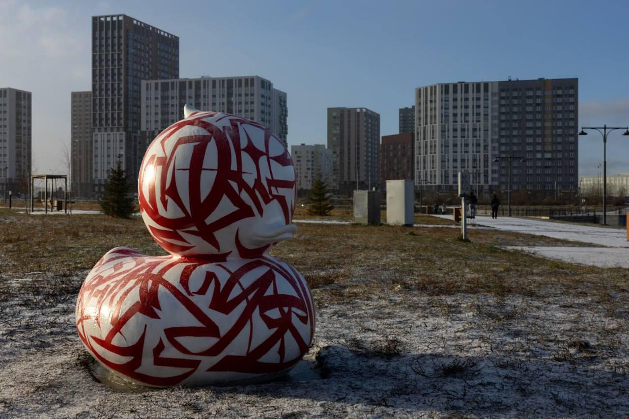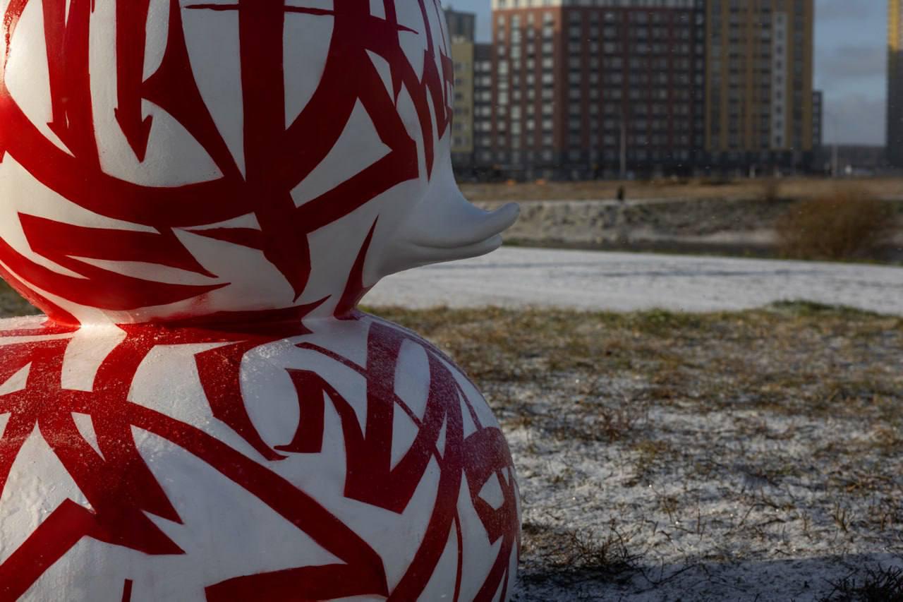 Теперь уточка живет в парке Академического района, как символ яркости, творчества и городской энергии.