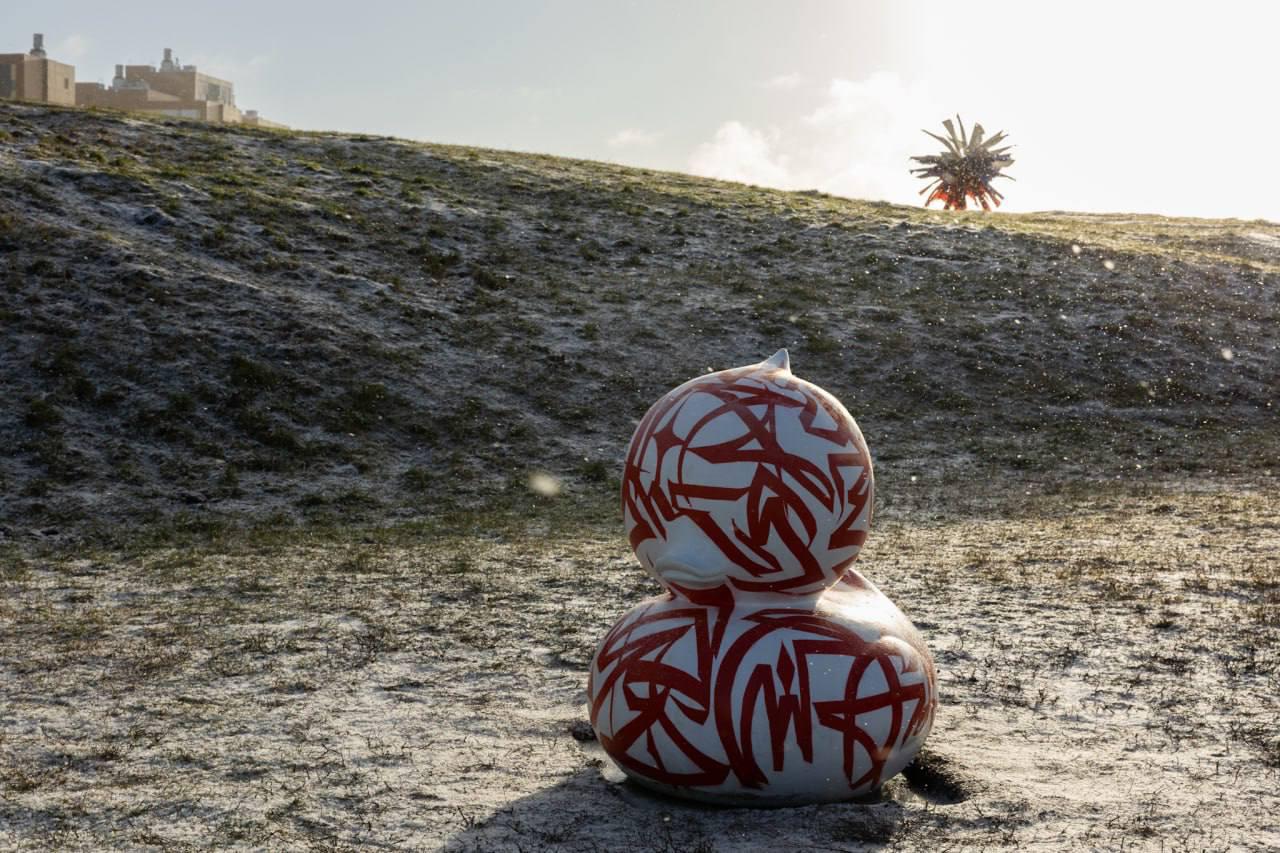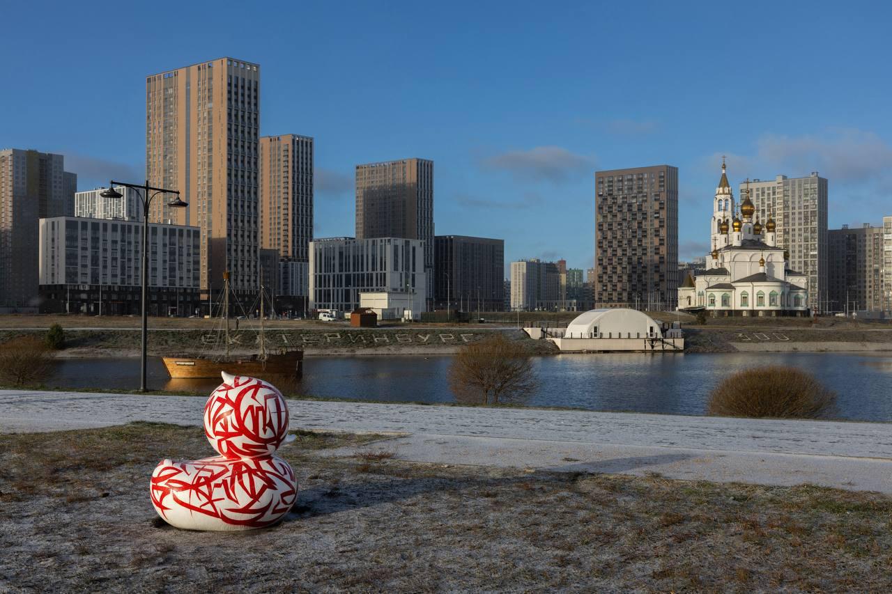 Команда фестиваля уличного искусства «Стенограффия» создала скульптуру, которую расписал каллиграф Денис Благо. В нанесенных узорах он зашифровал название слово «ПРОГРЕСС».
