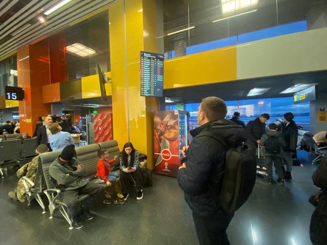 Такая сейчас обстановка в зоне ожидания, где находятся пассажиры, прошедшие предполетный досмотр.