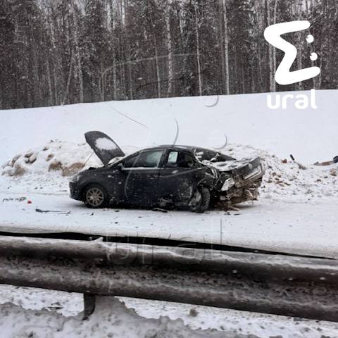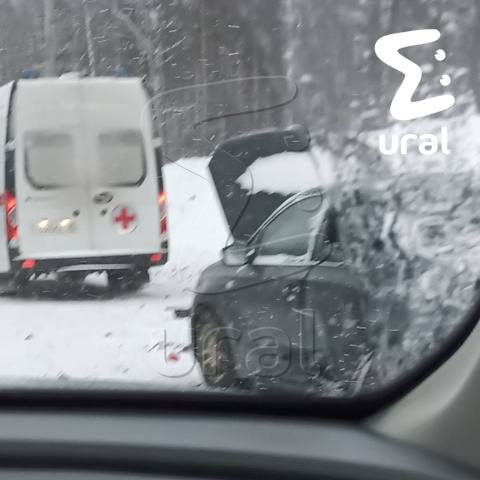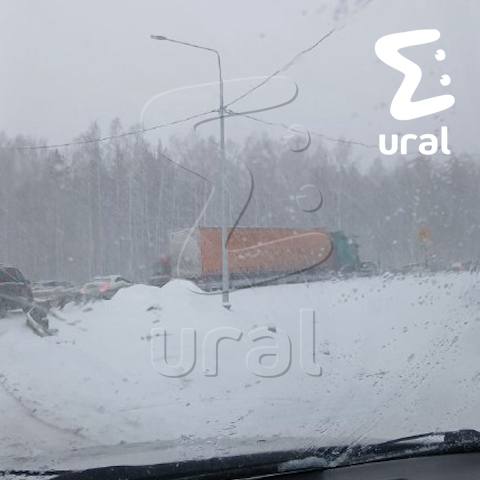 Предварительно, возле Ревды столкнулись большегруз и легковушка, плюс проблем добавляет сильный снегопад.
