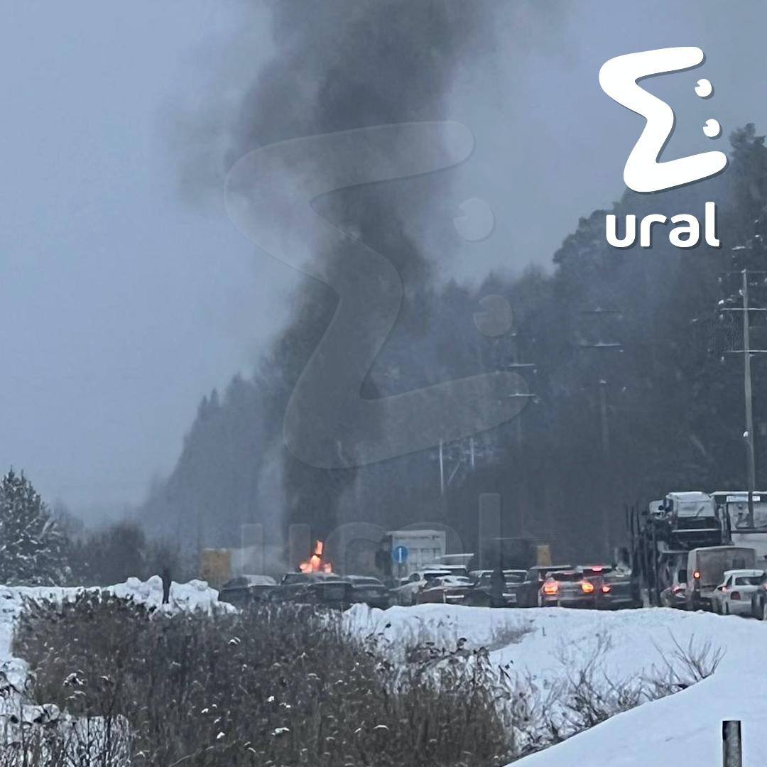 Машина горит на Серовском тракте после аварии — столкнулись "Шевроле" и "Газель".