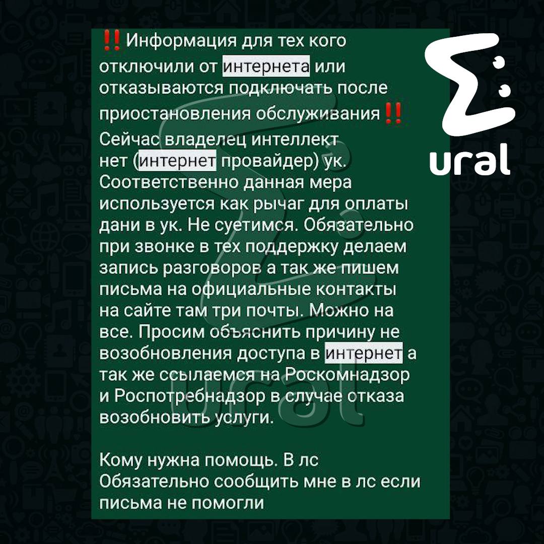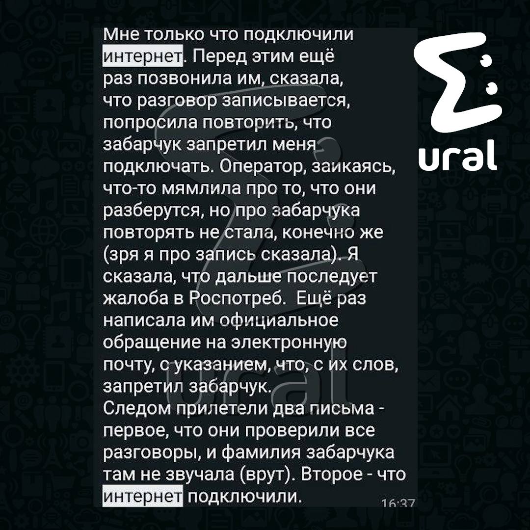 УК отключает интернет в Карасьеозёрском-2, когда в общем чате начинается срач с представителями компании, жалуются жители.