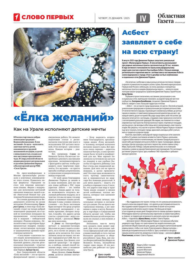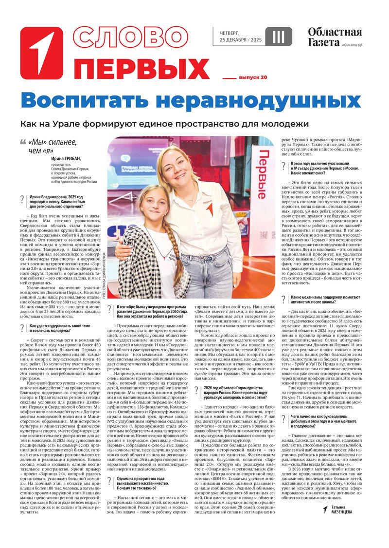Сегодня в новом номере «Областной газеты» вышли тематические страницы, посвященные совместному проекту «ОГ» и «Движения Первых» — «Слово Первых»