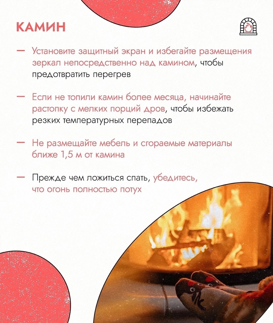 Помните об особенностях эксплуатации печей, каминов и буржуек.