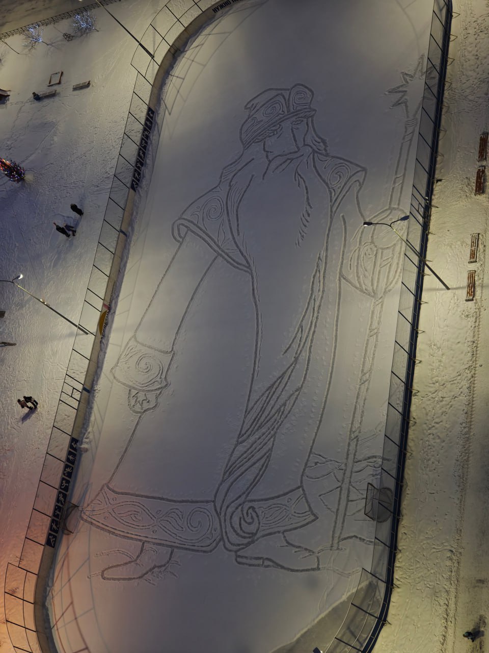 Огромный рисунок Деда Мороза появился на хоккейном корте в ЖК «Рассветный»