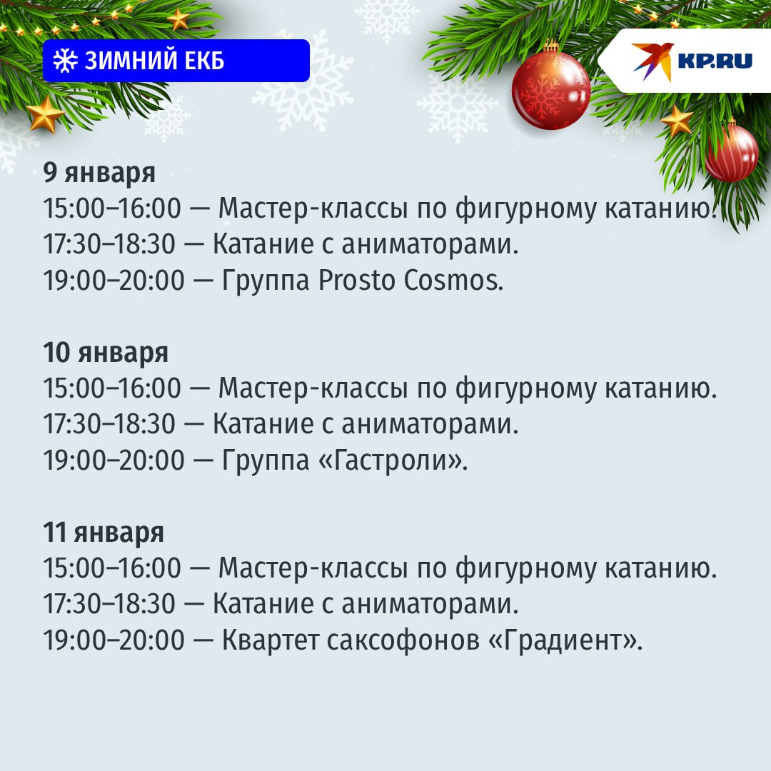 Публикуем расписание мастер-классов, катания с аниматорами и выступления музыкантов на Катке на площади.