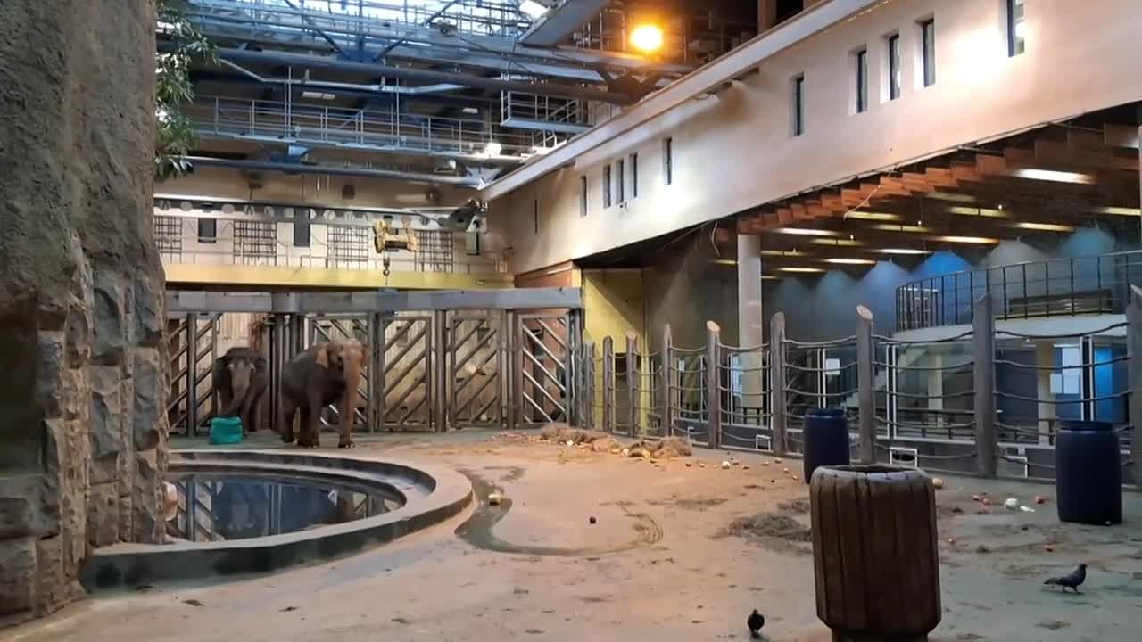 Немного милостей вам в праздничную ленту: слонихам Пипите и Капри в московском зоопарке в теплый вольер поставили бочки со снегом и фруктами внутри.