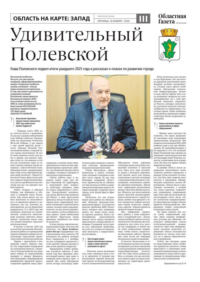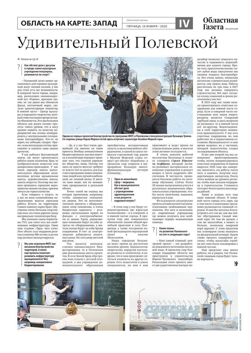 Сегодня в новом номере «Областной газеты» вышли тематические страницы, посвященные западу Свердловской области