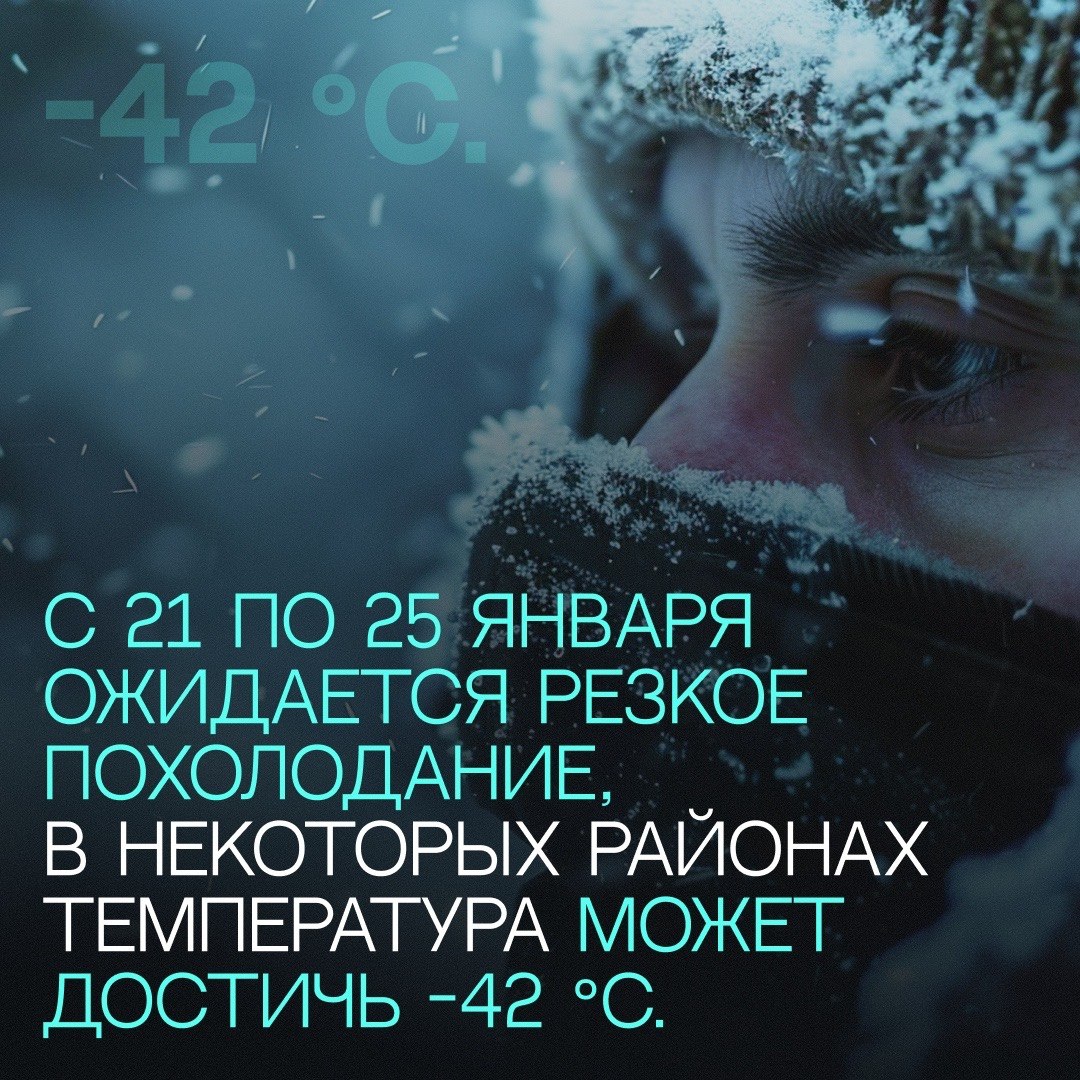 С 21 по 25 января ожидается резкое похолодание, в некоторых районах области температура может достичь -42 °C.