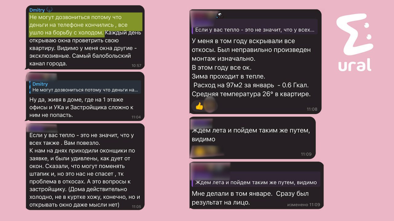 Дмитрий Жуков — руководитель УК от застройщика "Формула строительства" — сам живёт в этом доме. После нашей публикации он высмеял замерзающих соседей в общем чате (смотрите скрины), а фото-видео доказательства дубака проигнорил.