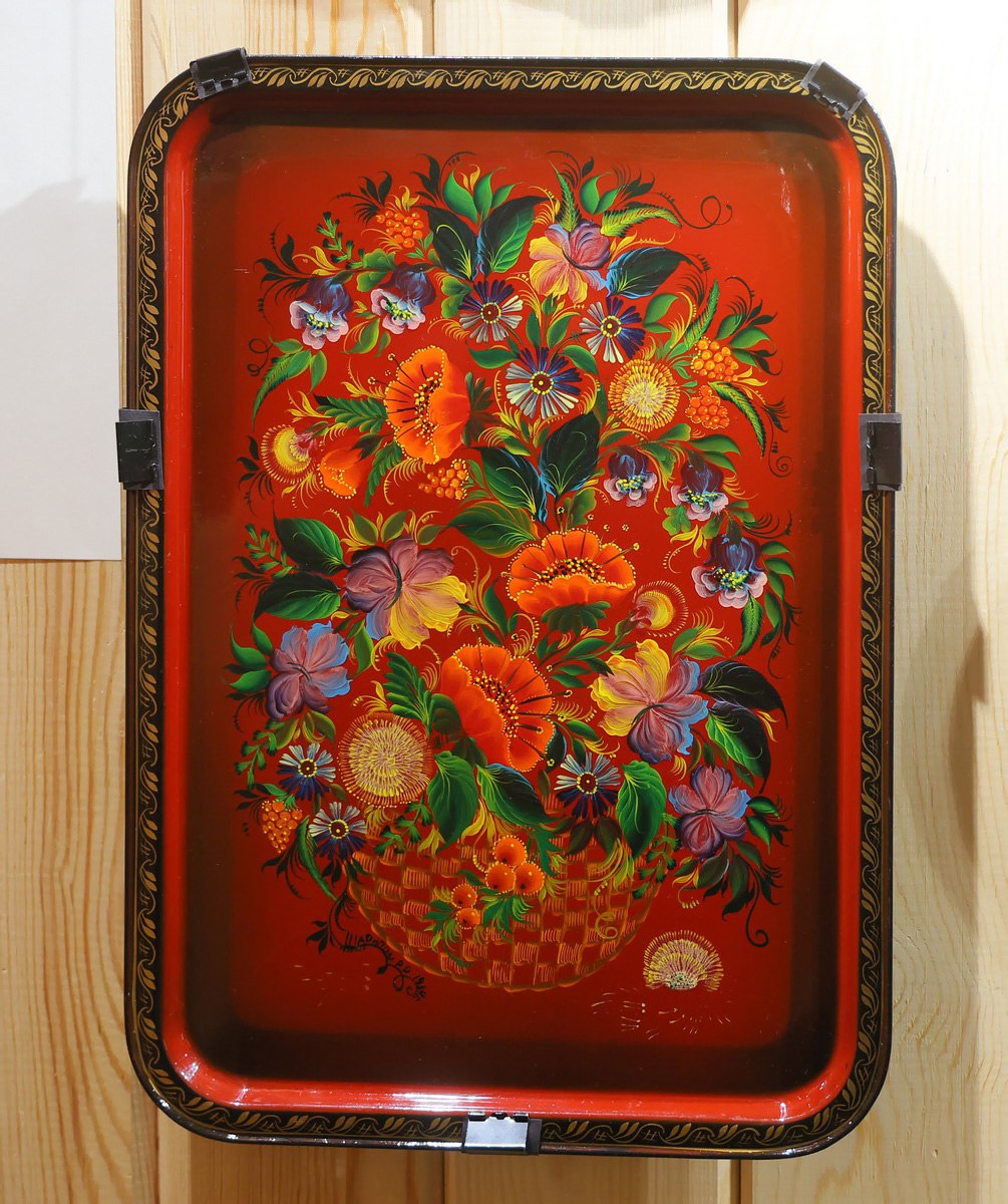 В экспозиции представлены 30 подносов 11 художниц, чьи имена, по мнению сотрудников музея, уже составляют золотой фонд знаменитой тагильской лаковой росписи по металлу. И впервые за много лет одна выставка собрала сразу столько юбиляров.