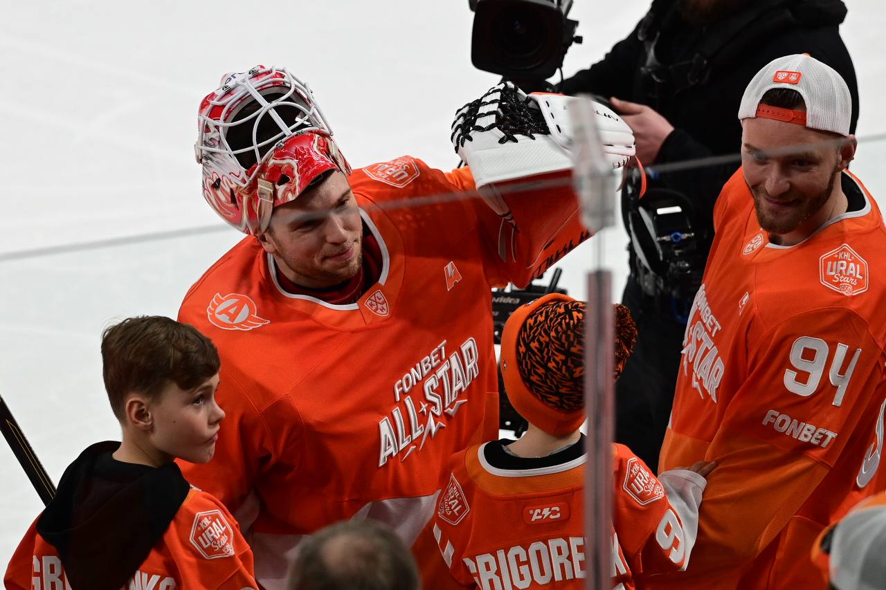 На «УГМК Арене» состоялось мастер-шоу с участием лучших хоккеистов КХЛ. Голкипер «Автомобилиста» Владимир Галкин – победитель конкурса вратарей