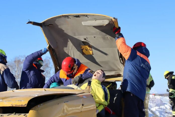 Более 50 сотрудников дорожных и экстренных служб, 15 единиц наземной техники и вертолет отработали алгоритм спасения людей при ДТП на трассах Свердловской области 11 февраля