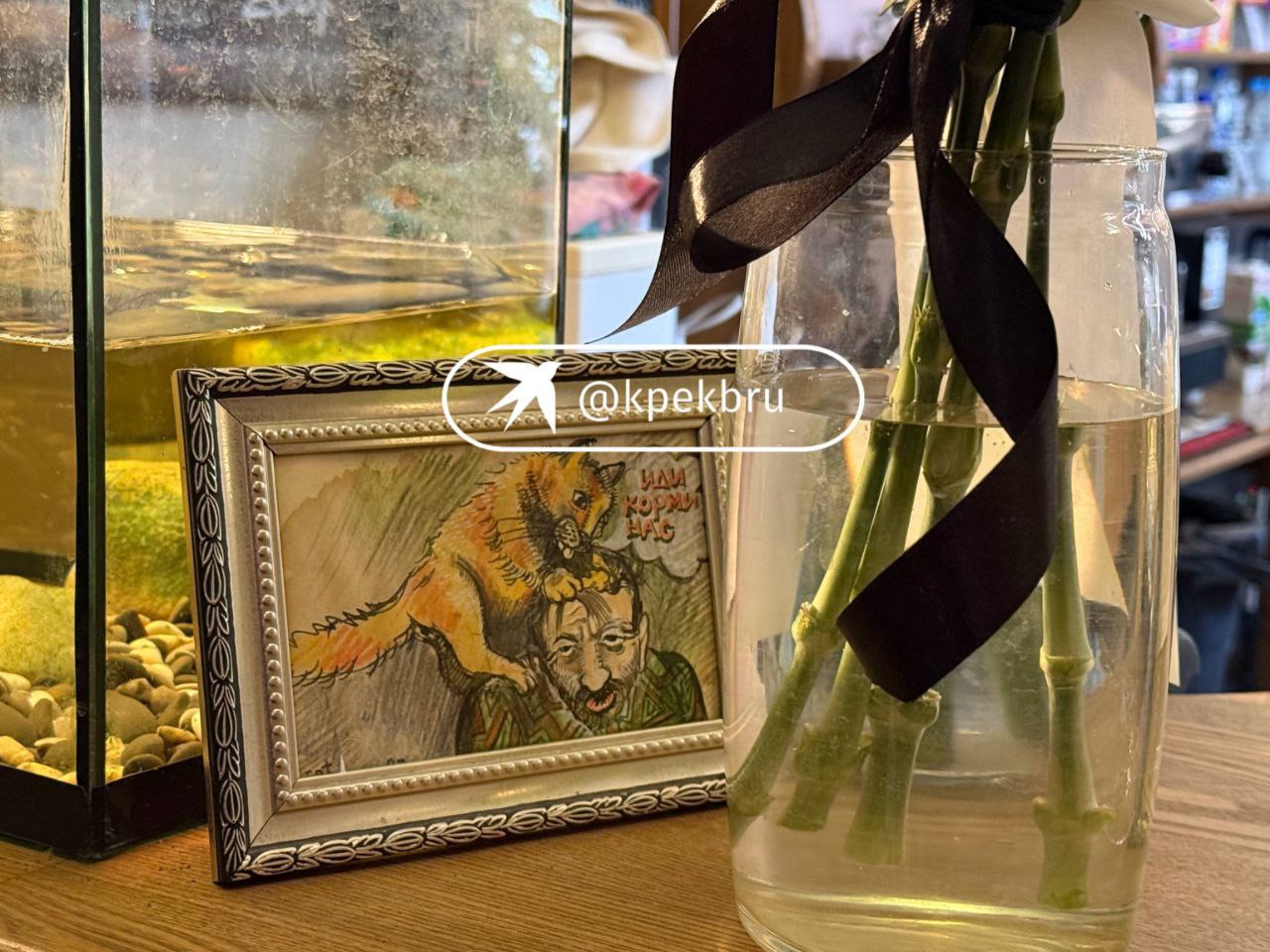 В буфете рядом с фото драматурга поставили вазу с гвоздиками.