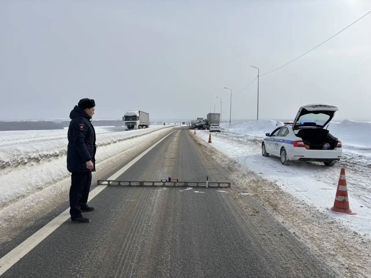 На месте ДТП работают сотрудники Госавтоинспекции и следственно-оперативная группа по выяснению всех деталей столкновения.