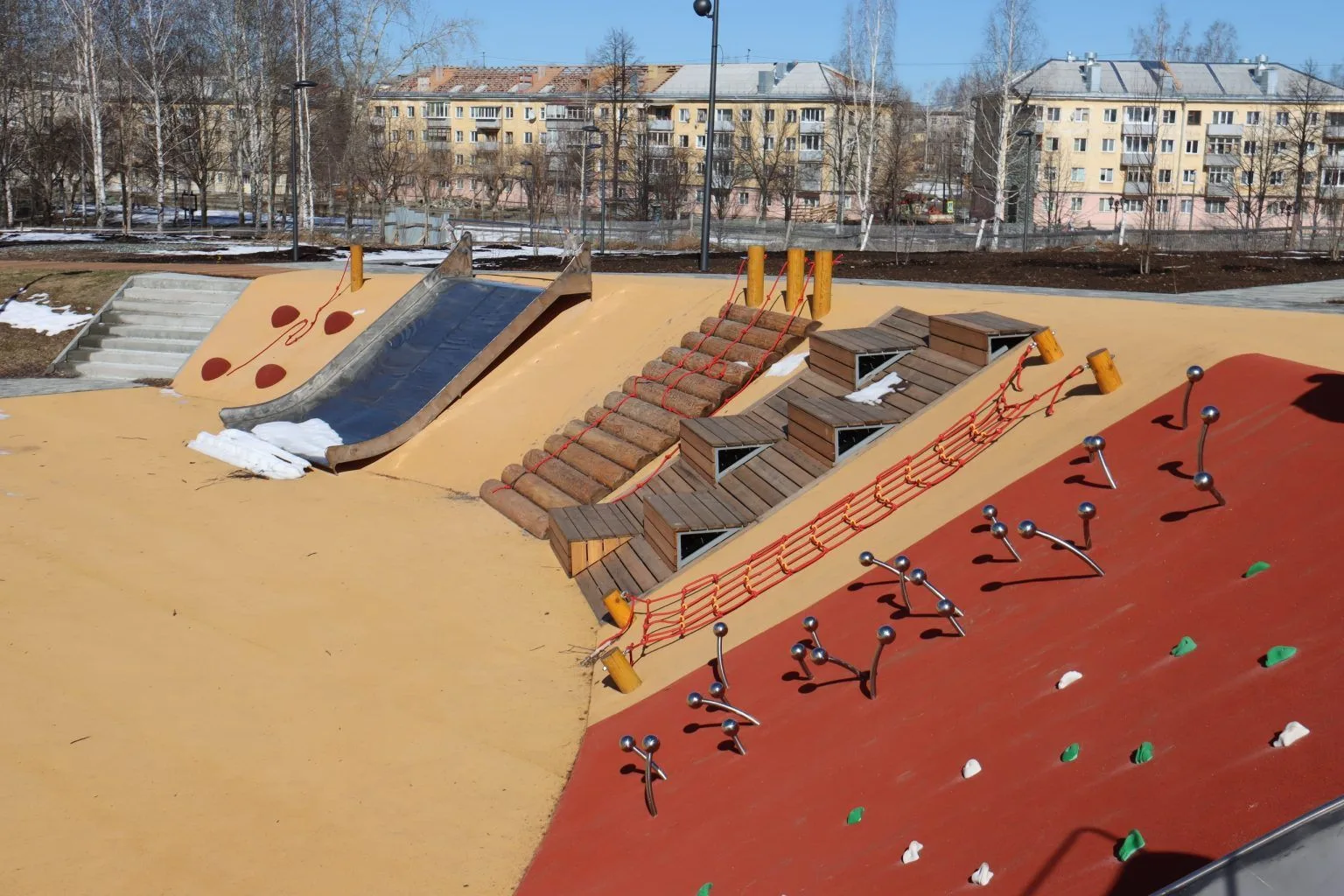 На площадке построили скейт-парк и детскую площадку, а также завершили большую часть работ по оборудованию спортивной локации. В некоторых местах появился рулонный газон. Продолжалась работа по укладке тротуарной плитки для пешеходных дорожек, установке бордюров на лыжероллерной трассе, организации площадки для выгула и дрессировки собак.