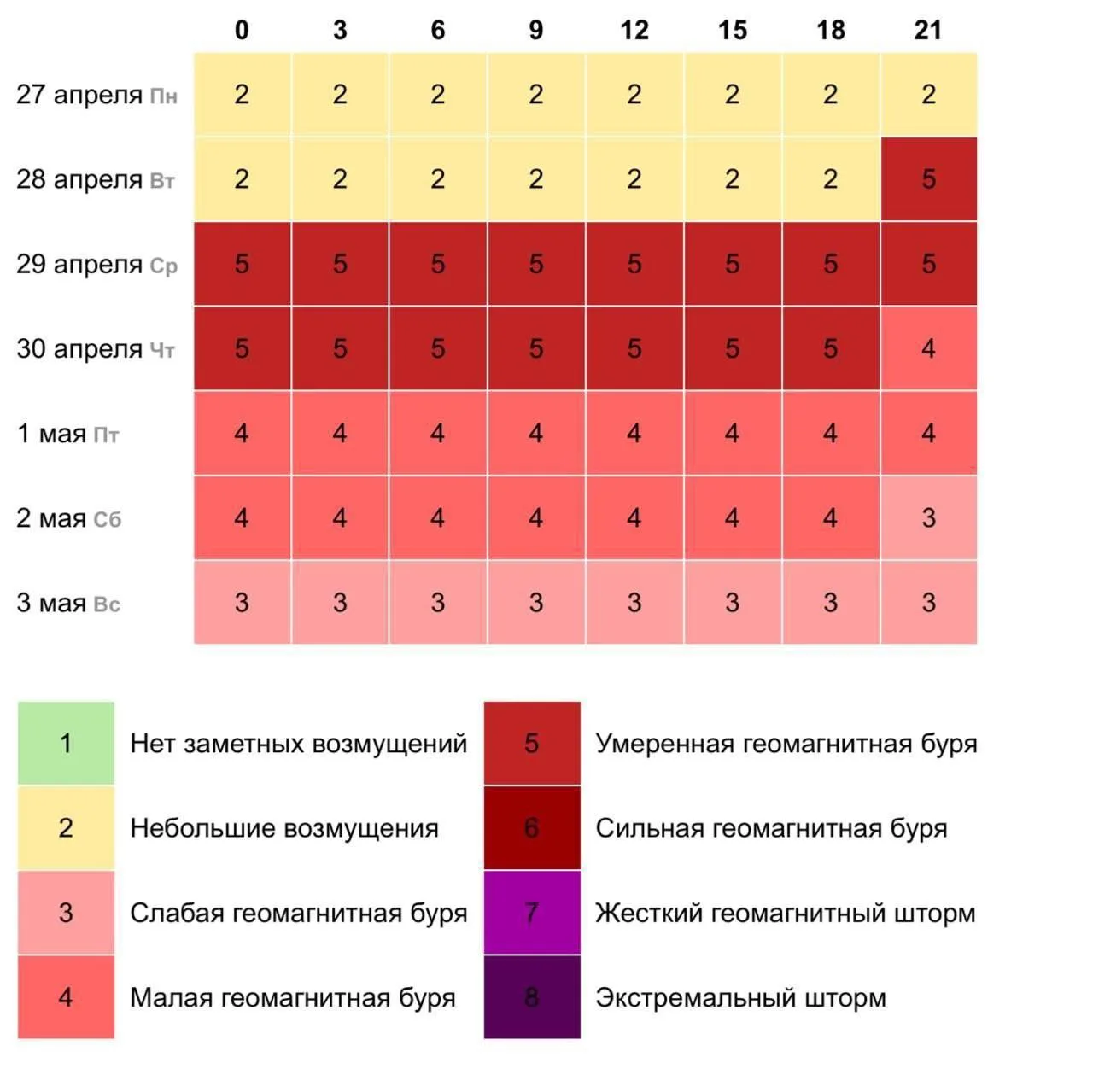 Сильные магнитные бури ожидаются на Земле с 28 апреля по 3 мая