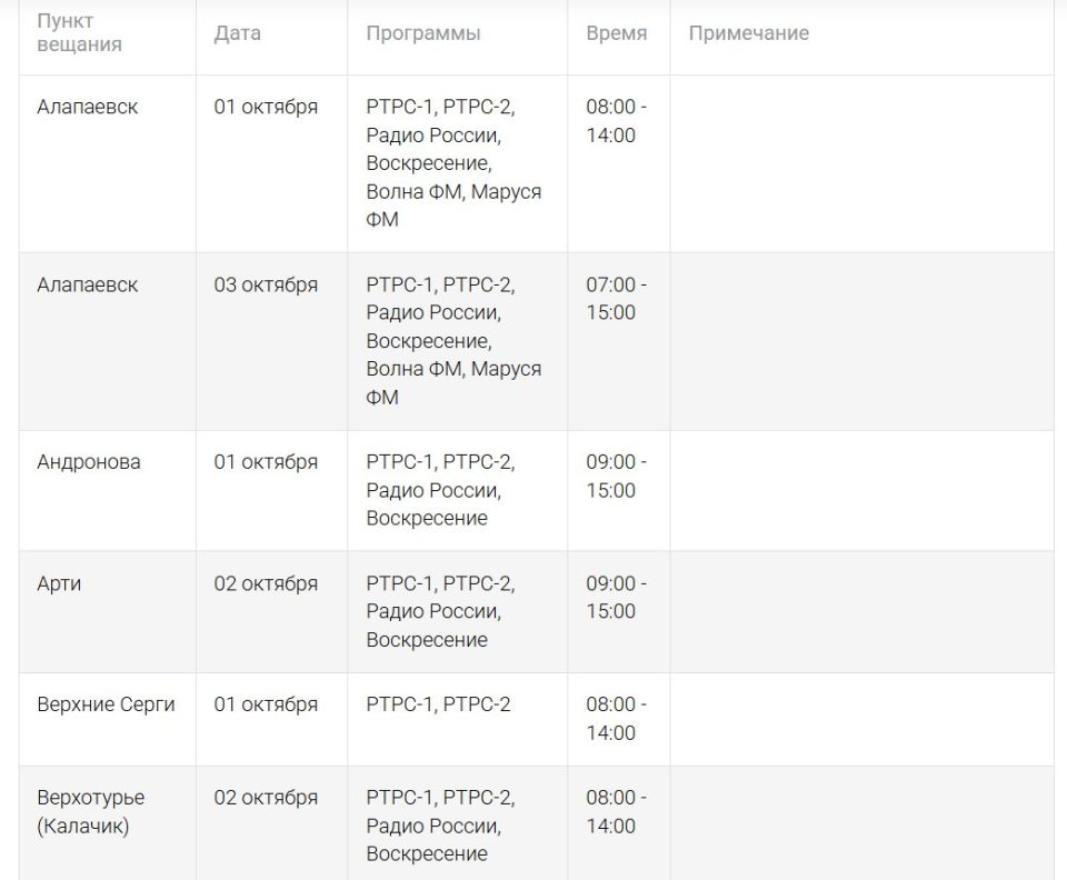 С 1 по 3 октября в Свердловской области ожидаются отключения теле- и радиосигнала. На станциях пройдут профилактические работы.В случае неблагоприятных погодных условий работы отменят или перенесут на более поздний срок.Подпишись...