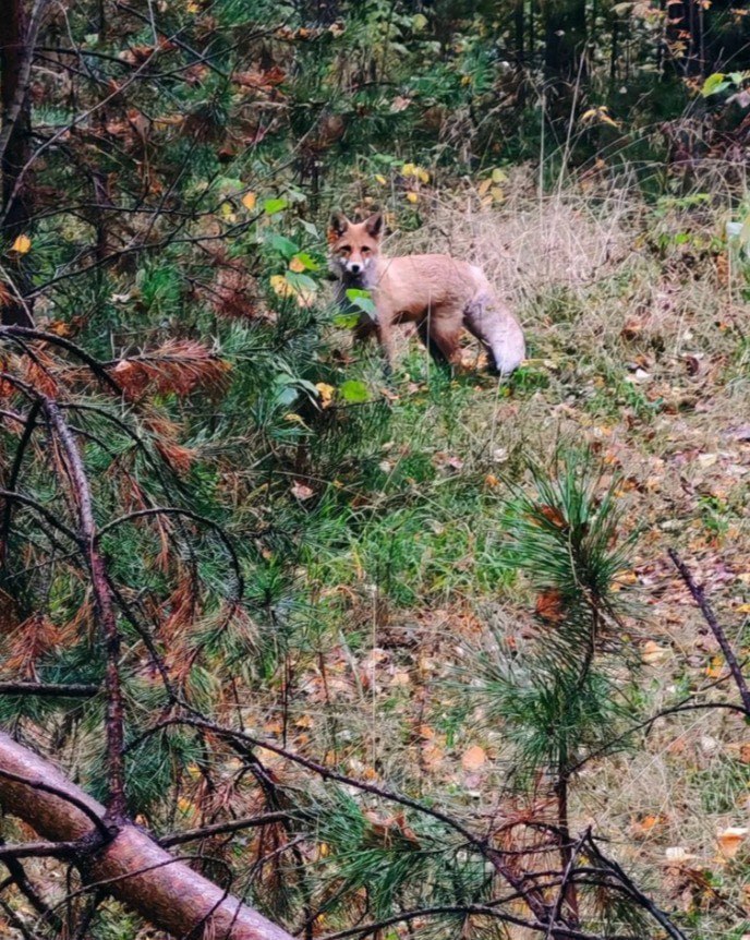 Очевидцы рассказали, что рыжая гостья вела себя очень осторожно, но в итоге любопытство победило. Она спряталась в кустах и наблюдала за людьми, а затем проводила их до следующей полянки.