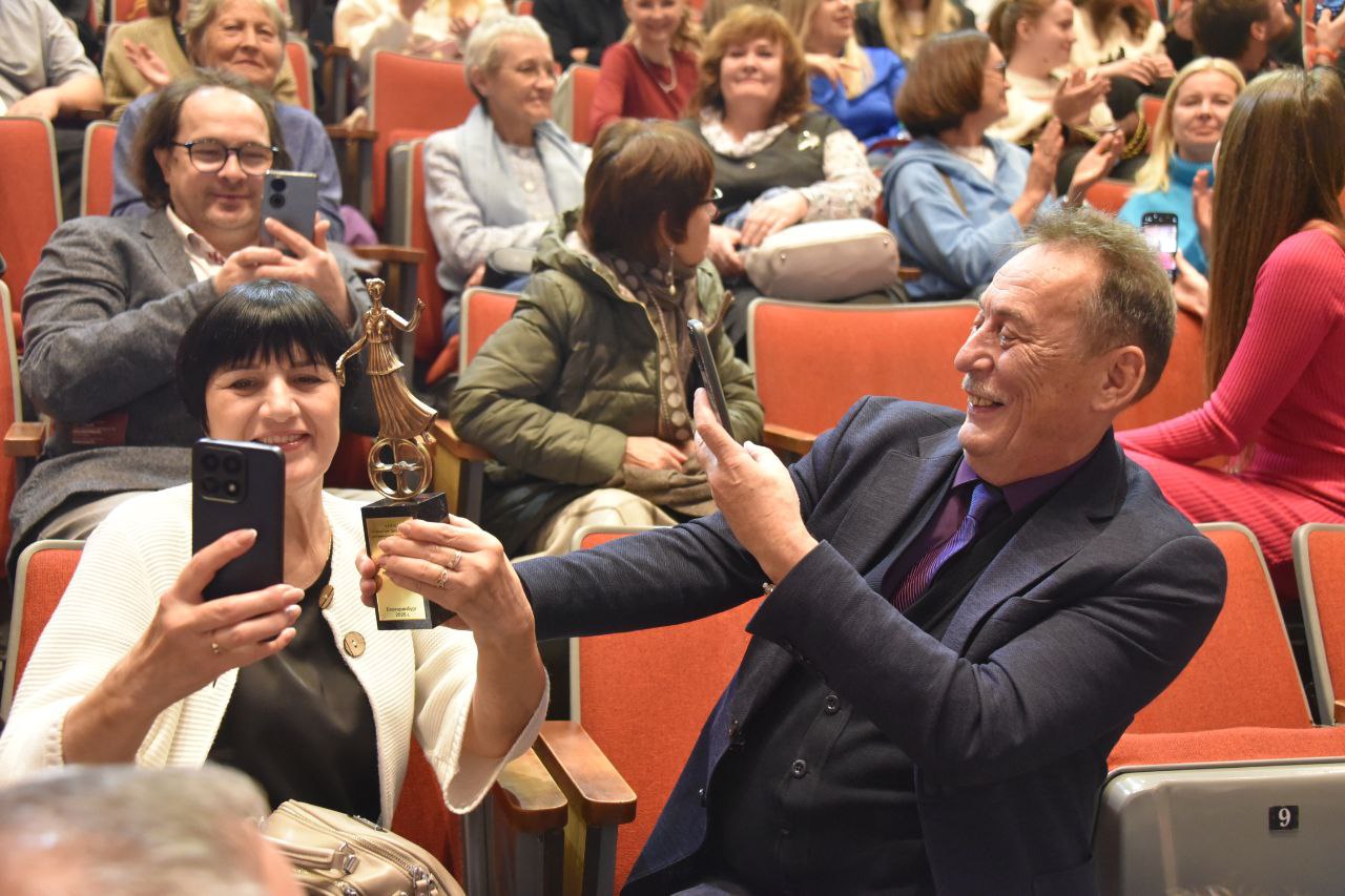 Кроме того, по давней традиции гости церемонии открытия смогли прикоснуться к призам фестиваля: их передали через зрительный зал, чтобы каждый мог рассмотреть статуэтки, которые уже через шесть дней будут вручены победителям «России».