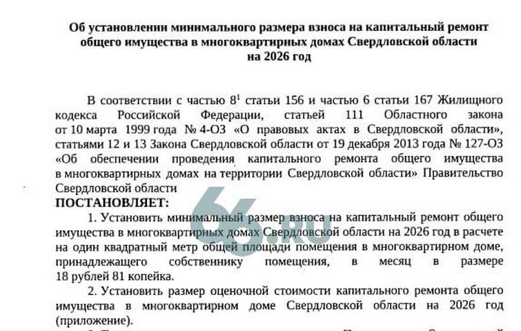 С января 2026 года плата за капитальный ремонт в Свердловской области увеличится на 7.6%. Тариф за квадратный метр вырастет с 17.48 до 18.81 рубля, что связано с инфляцией в строительной сфере и ростом зарплат рабочих. Читать на сайте